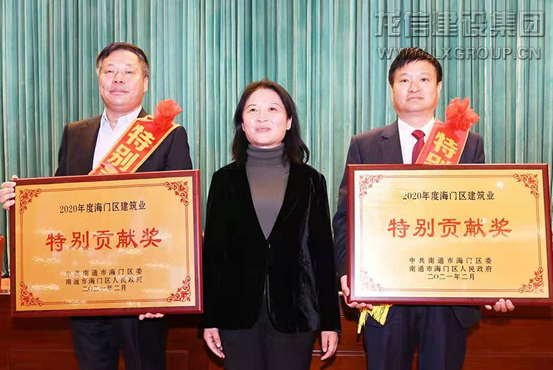 2月20日上午,海門區委、區政府召開全區建筑業大會。區委書記郭曉敏出席會議并講話,區委副書記、區長沈旭東主持會議,并宣讀表彰決定。區人大常委會主任成偉,區政協主席倪永平,區委副書記徐加明出席會議。龍信集團黨委書記、董事長陳祖新,黨委副書記、總經理唐愛東,常務副總何咸軍,安全總監馬漢忠,財務總監樊忠飛,總工程師殷廣玉,工會主席蔡颯爽等共同參加會議。