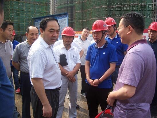 2018年05月19日上午9時(shí)株洲市委副書記、市長陽衛(wèi)國、市住建局長何安國、天元區(qū)委書記周建光等領(lǐng)導(dǎo)考察龍信集團(tuán)株洲湘水灣四期高層安全生產(chǎn)工作。市質(zhì)安處曾靖處長、鄧少云科長等有關(guān)領(lǐng)導(dǎo)陪同。
