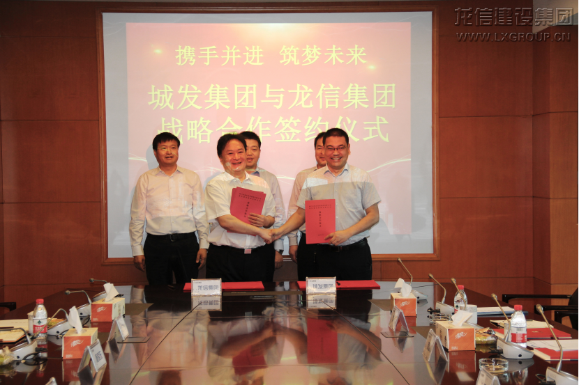 5月30日,龍信集團(tuán)與城發(fā)集團(tuán)在龍信大廈二樓南會議室舉行戰(zhàn)略合作簽約儀式,海門市常務(wù)副市長沈旭東、海門市政府辦公室副主任陳小鋒、城發(fā)集團(tuán)董事長何耀華、總經(jīng)理楊勇、副總經(jīng)理蔡偉,龍信集團(tuán)董事長陳祖新、總經(jīng)理唐愛東、常務(wù)副總何咸軍、財務(wù)總監(jiān)樊忠飛等共同出席儀式。