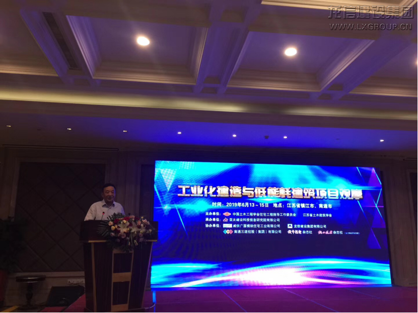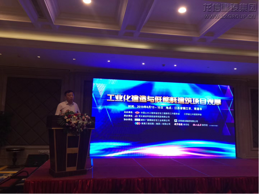 2019年6月14—6月15日,由中國土木工程學會住宅工程指導工作委員會、江蘇省土木建筑學會主辦,龍信集團等單位協辦的“工業化建造與低能耗建筑項目觀摩”活動在鎮江、海門兩地舉行。中國土木工程學會理事長、原住建部副部長郭允沖,中國土木工程學會住宅工程指導工作委員會理事長張軍、副理事長熊衍仁、常務副理事長兼秘書長陳昌新、副秘書長王琳,《城市住宅》雜志社、《施工技術》雜志社主編張可文,中國建筑標準設計研究院有限公司副總建筑師朱茜,江蘇省勘察設計協會會長、原江蘇省住建廳副廳長徐學軍,江蘇省土木建筑學會副理事長、秘書長王華等出席活動。龍信集團黨委書記、董事長陳祖新,副總經理、總工程師殷廣玉,質量部副經理郁臻楨共同出席本次觀摩會。全國建筑企業總經理、總工類骨干約70人共同參加。