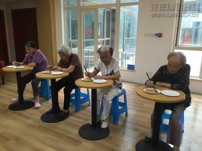 第二個比賽項目是快樂套圈。長者們認真的投擲著手中的套圈,為套中而欣喜,也為落空而遺憾。但是最幸福的事,不是你摘得了桂冠,而是看到你的臉上洋溢出許久未見的笑容。1301室的陳叔叔自中風后身體狀況一直不佳,平時的起居飲食需要保姆的照料,他坐著輪椅來到規定的比賽投擲線,用自己稍稍顫抖的右手接過套圈,當大家看到這樣的距離對他來說比較困難的時候,參賽的其他叔叔阿姨主動提出要為他縮短距離。在樂頤薈這個大家庭里,每一次活動,規則不重要,輸贏更不重要,重要的只有這彌足珍貴的鄰里情誼。當陳叔叔投中時,他笑了,這一笑溫暖了在場的所有人。最終,508室的俞阿姨、1101室的施叔叔、1301室的陸阿姨奪得了前三甲。