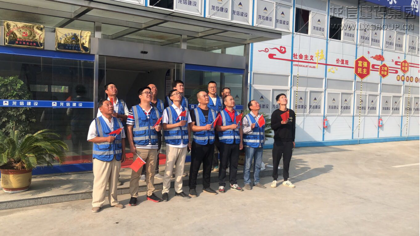慶中秋國慶|龍信集團白廟安置小區項目部、桃園安置小區項目部舉行升國旗儀式