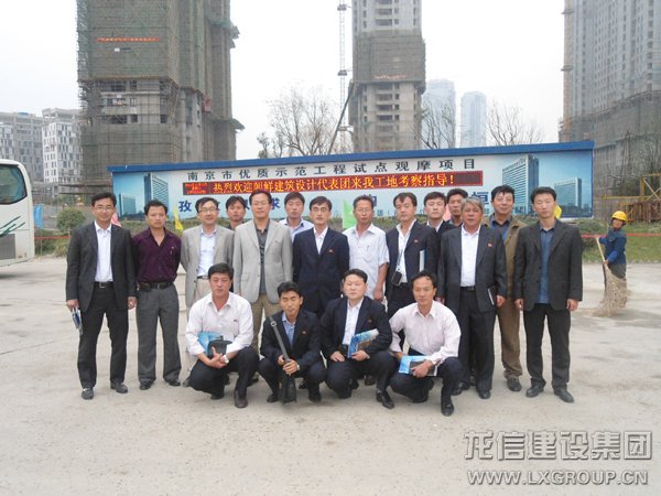 朝鮮代表團帶隊朝鮮駐中國大使館參贊鄭賢宇介紹了代表團的情況及此行目的,項目經理費永新代表江灣城二期項目對客人的到來表示歡迎,詳細介紹了龍信集團的發展情況,及江灣城二期項目質量控制和安全文明的實施落實情況,隨后,費經理及安全主管帶領代表團參觀工地,代表團認真聆聽費經理的講解,并不斷詢問各節點的具體做法及新技術新工藝的運用情況。